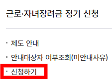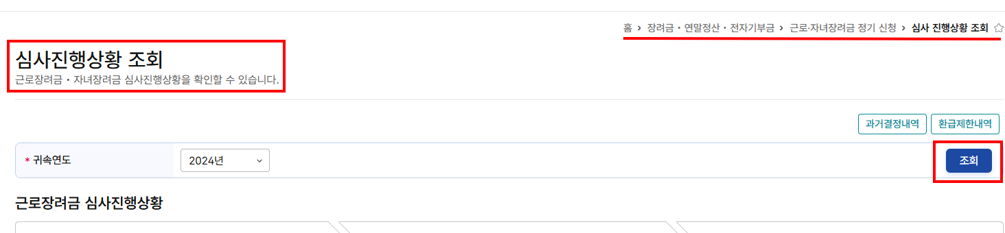 홈 > 장려금·연말정산·전자기부금 > 근로·자녀장려금 정기 신청 > 심사 진행상황 조회