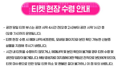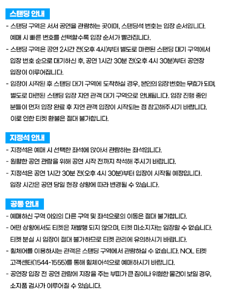 - 좌석 정보 미리 확인, 스탠딩은 필수 확보