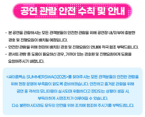 지금까지 싸이 흠뻑쇼 전국 일정과 예매 팁, 준비물까지 모두 안내드렸습니다. 싸이와 함께 물벼락 속에서 즐기는 여름 콘서트, 흠뻑쇼는 단순한 공연이 아니라 생생한 페스티벌입니다. 싸이 흠뻑쇼 예매는 필수입니다—준비하고, 클릭하고, 반드시 성공하세요!